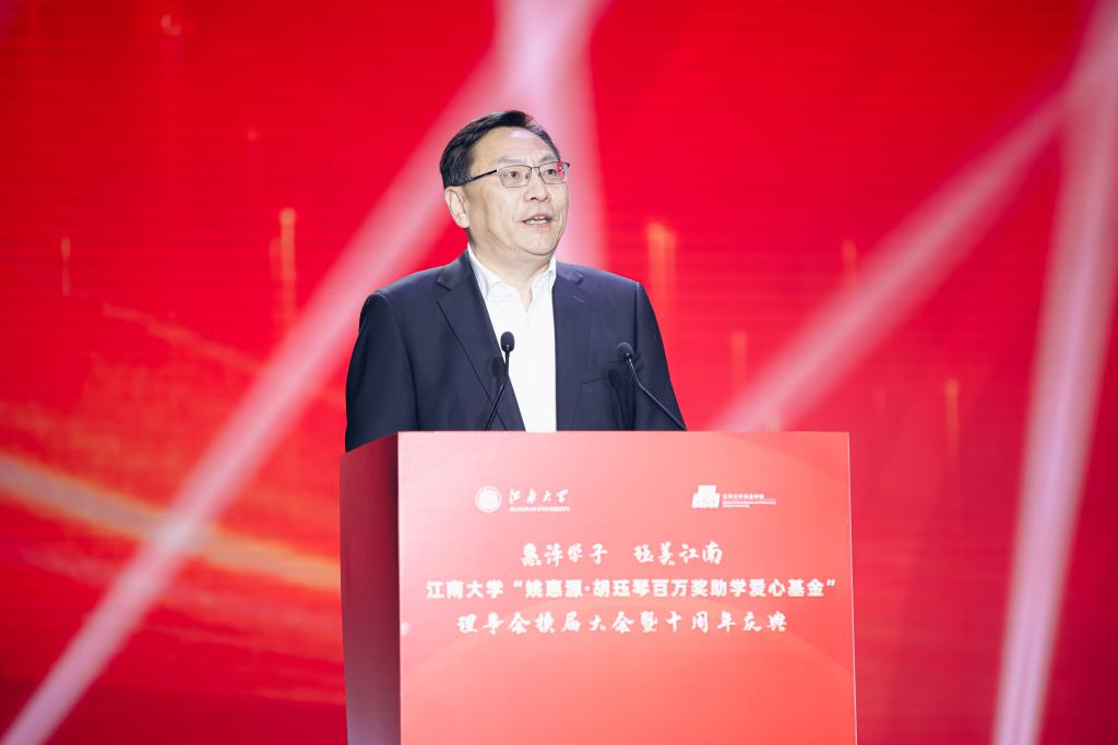 吴正国首先致辞。他代表学校党政向出席活动的领导嘉宾表示热烈欢迎,向姚惠源老师表达最诚挚的敬意。他指出,爱心基金将几代江南食品人汇聚在“培养一流食品人、追逐食品强国梦”的同心圆中,这是一种师风引领、行业协同、社会联动的育人新模式,是立德树人的良好实践。他希望学子们接续传承,常怀感恩之心,常思来之不易,担当青春使命,用所思所学增进民生福祉、推动社会进步,为强国建设和民族复兴贡献江南青春力量;希望青年教师以姚惠源等前辈为榜样,将教育家精神深植于心、付诸于行,做到立德立言立功,躬耕教坛,桃李天下。吴正国希望小黄书