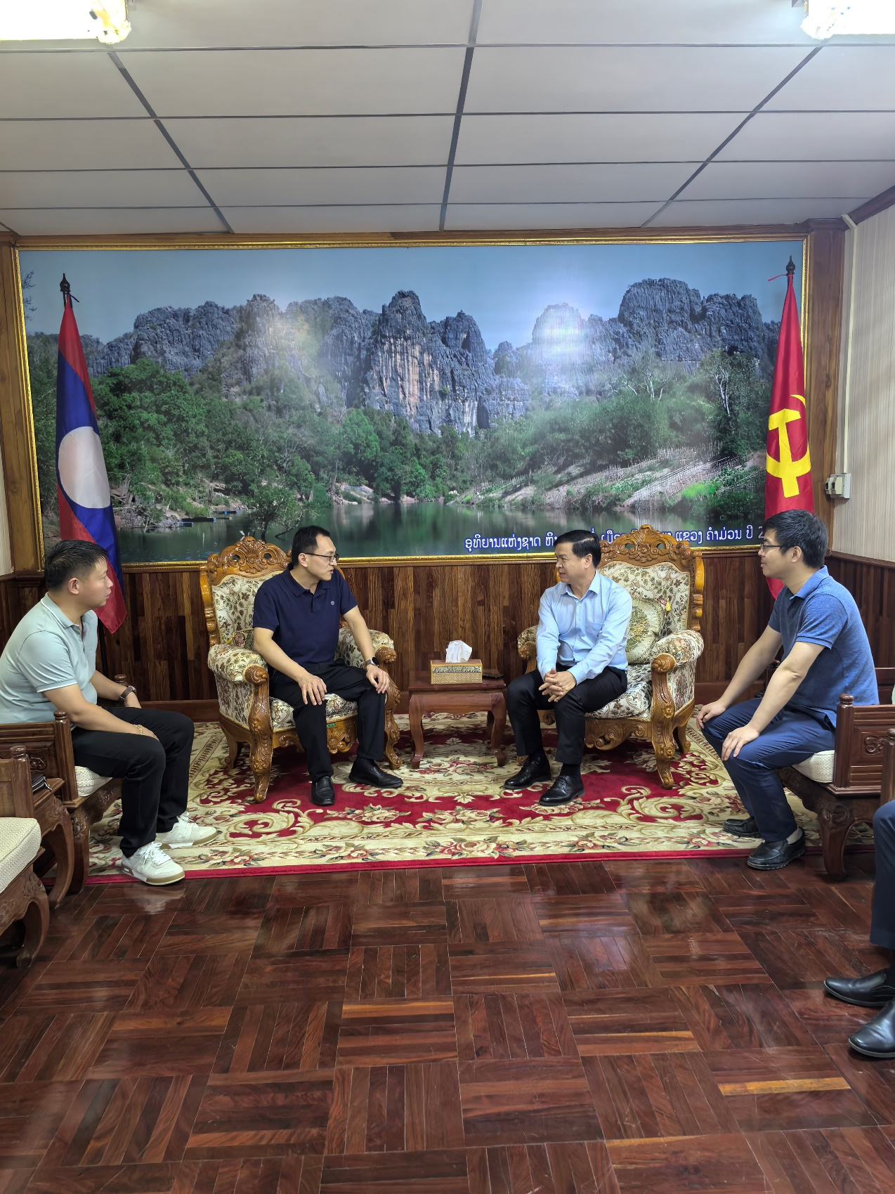 老挝农林部副部长纪高·辛纳翁与许艳顺一行会谈