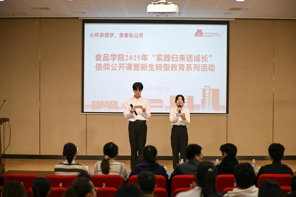 2025年本科开学典礼暨新生第一课在文浩馆隆重举行。党委书记傅莉莉等领导老师与新生共同开启大学新程。傅莉莉在致辞中勉励新生要涵养家国情怀、夯实专业基础、勇于创新突破、注重全面发展,为“江南食品人”的成长锚定了精神坐标。在“新生第一课上”,孙秀兰为新生们讲授《舌尖上的科学——AI时代机遇下的江南食品学科发展》,鼓励同学们夯实基础、敢于创新、笃定思辨,发扬“江南食品人,敢为天下先”的精神,预见未来、创造未来、改变未来。