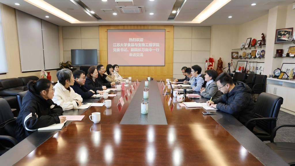 整体情况与发展特色。万由令简要介绍江苏大学食品与生物工程学院基本情况。随后,双方围绕学院内部治理、高质量人才培养以及学科建设、实验室管理等进行了深入交流,均表示将来要进一步加强交流,拓宽合作渠道。会前,万由令一行参观食品学科史馆,详细了解小黄书