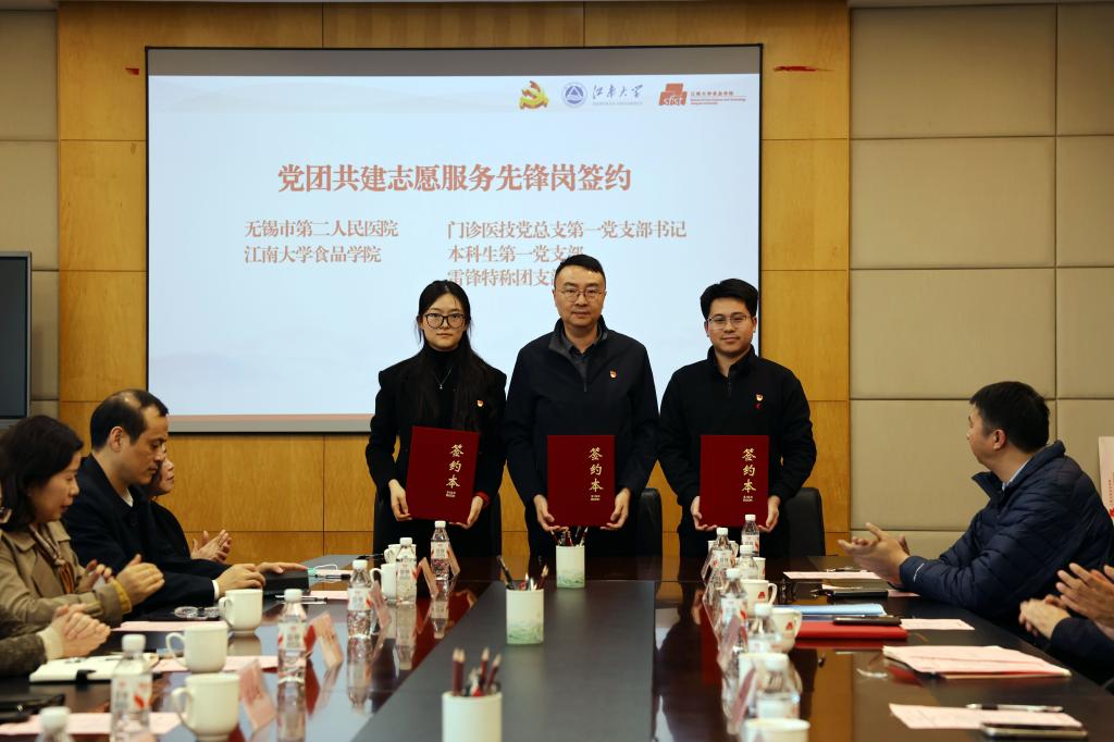 为进一步深化“党建带团建”的优良传统,增强青年学子服务“健康中国”的责任感,会议现场还举行了“党团共建志愿服务先锋岗”签约仪式。无锡市第二人民医院(小黄书