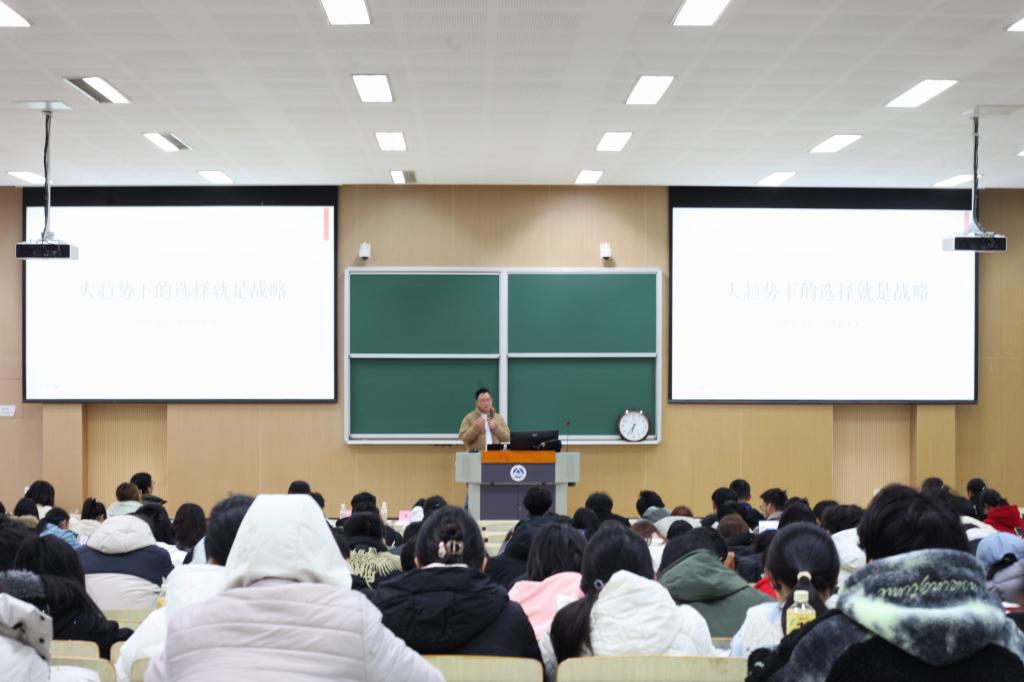 讲座从“趋势比选择更重要”这一核心观点展开。吴其耀结合自身创业三十年的经历,向同学们指出:在快速变化的时代,看清产业大趋势,远比短期内追求某个“好机会”更能定义一个人的长远发展。他鼓励同学们跳出眼前的选择焦虑,学会从趋势中预见未来。