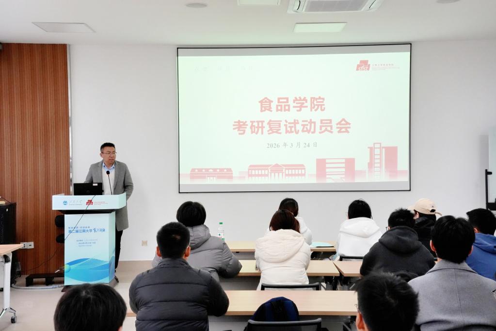 举办2026年考研复试动员会。学院党委副书记兼副院长马素伟、学工办副主任兼2022级本科生辅导员吴爽、2025级研究生张峰诚及考研复试学子共同出席会议。