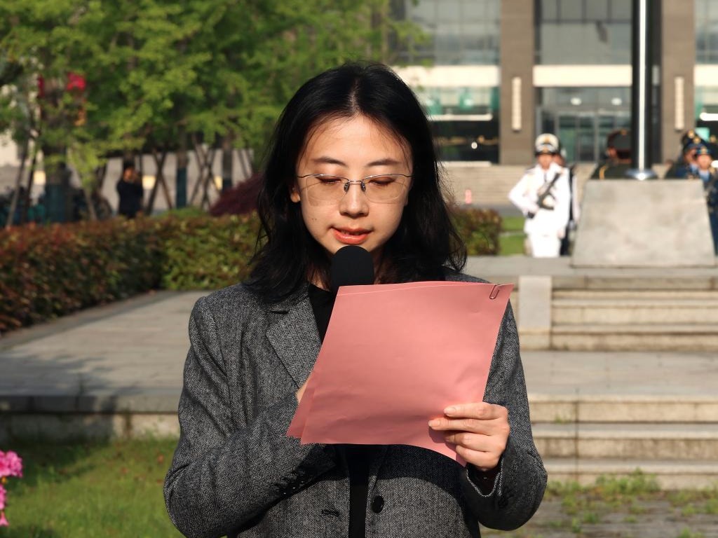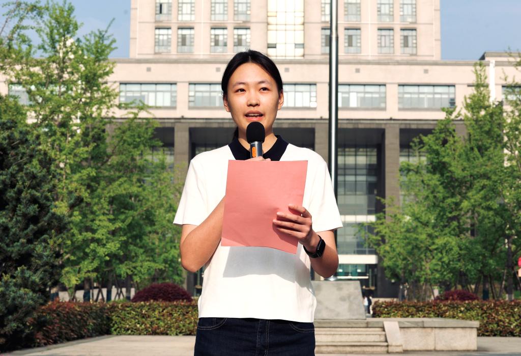 李雨宸作为无锡医学院新团员代表发言。她结合以“健康所系,性命相托”的医学信仰和“医食同源”的协同理念,表达了新时代医学生传承仁心仁术、勇攀医学高峰的决心,号召同学们用专业所长服务社会,以青春之力报效国家。