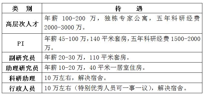 注:高层次人才、PI岗位提供事业编制;其他岗位均为合同制人员,并设定试用期,考核优秀人员有机会转为事业编制。