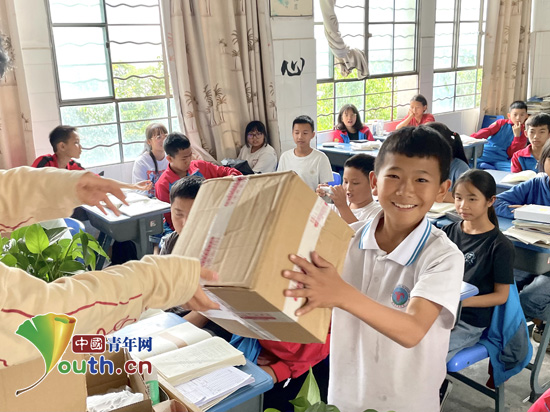 “我想要一个篮球”、“我想要一只荧光笔”、“我想要一首为自己加油的小诗”…孩子们在纸上纷纷写下了自己的愿望。孩子们没想到这些小愿望真的全部实现了。很快,礼物就被发放一空。孩子们欣喜地打开自己的礼物,看着来自远方哥哥姐姐们的加油和鼓励,脸上露出了笑容。