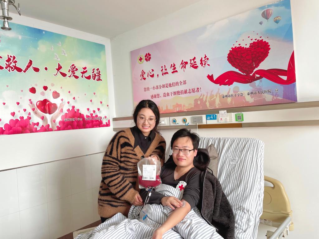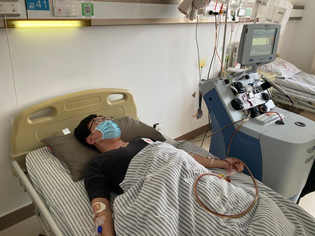 经过高分辨检测和体检后,在各方的支持下张凯乘坐红十字班车前往了泰州市人民医院,开启了自己的捐献准备。期间,他每日注射两针动员剂,并采血检测细胞数量,为保证捐献顺利,还需每日额外补充钙。相比于其他造血干细胞捐献志愿者,张凯的动员剂副作用比较强烈,第一针注射后中午便开始有了腰椎酸痛和轻微感冒的症状。注射第三天,由于动员细胞数量不达标,加大了动员剂注射剂量,使得腰痛更加剧烈,只能靠止痛药维持。经过四天的动员剂注射,第五天上午,经过三个半小时的捐献,张凯成功捐献造血干细胞混悬液324 mL。看着象征着生命的血袋,张凯表示,“捐献的过程确实艰辛,但我觉得如果再有一次这样的机会,我还是会义无反顾的同意捐献,相比于生命,这点疼痛,算不上什么”。