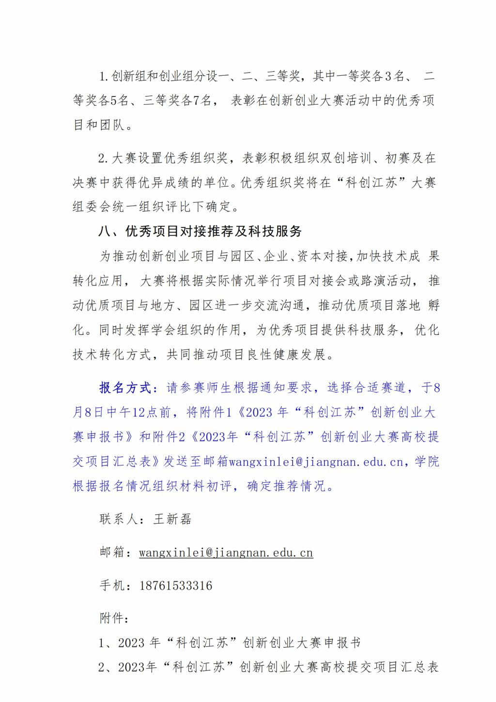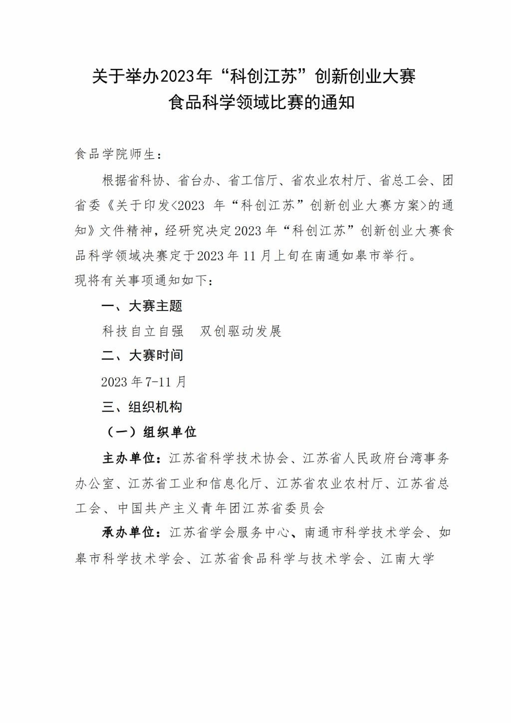 关于举办2023年“科创江苏”创新创业大赛食品科学领域比赛的通知