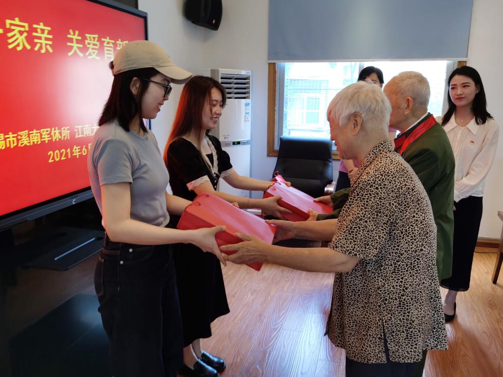 前往无锡市溪南军休所开展“民族一家亲,关爱育新人”慰问活动。无锡市“光荣在党50年”离退休干部优秀共产党员董振泰、华福娟,溪南军休所副所长、关工委副主任陈鸣辉,溪南军休所办公室主任林世琳,小黄书